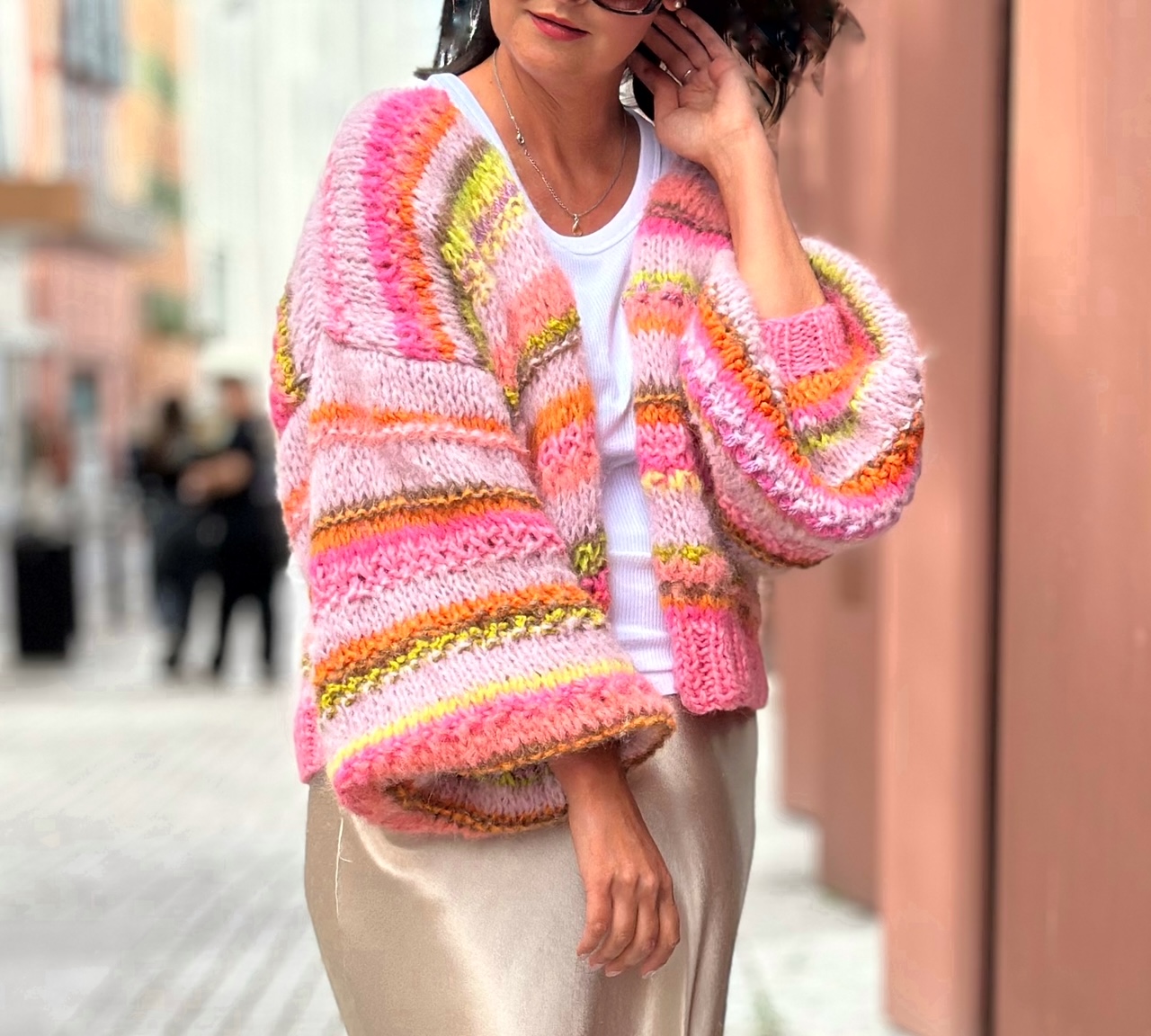 SHE is joy to pierwszy kardigan z kolekcji SHE. Ta kolekcja to naturalne włóczki (alpaka, merino, jedwab , moher z niewielką domieszką akrylu),piękne kolory i ich niebanalne połączenia, szerokie rękawy, strukturalny splot. Dla Ciebie, byś czuła się kobieco i komfortowo, byś przyciągała spojrzenia.