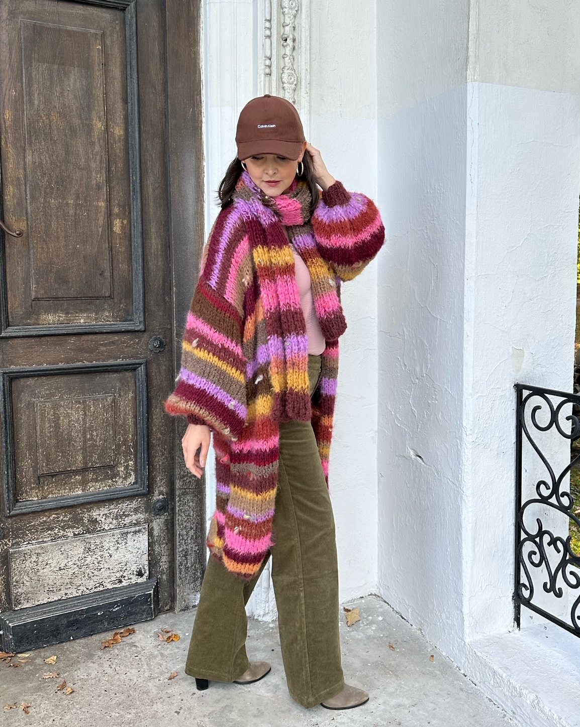 Szal przedstawiony na zdjęciach, idealnie pasujący do kardiganu można zakupić oddzielnie.