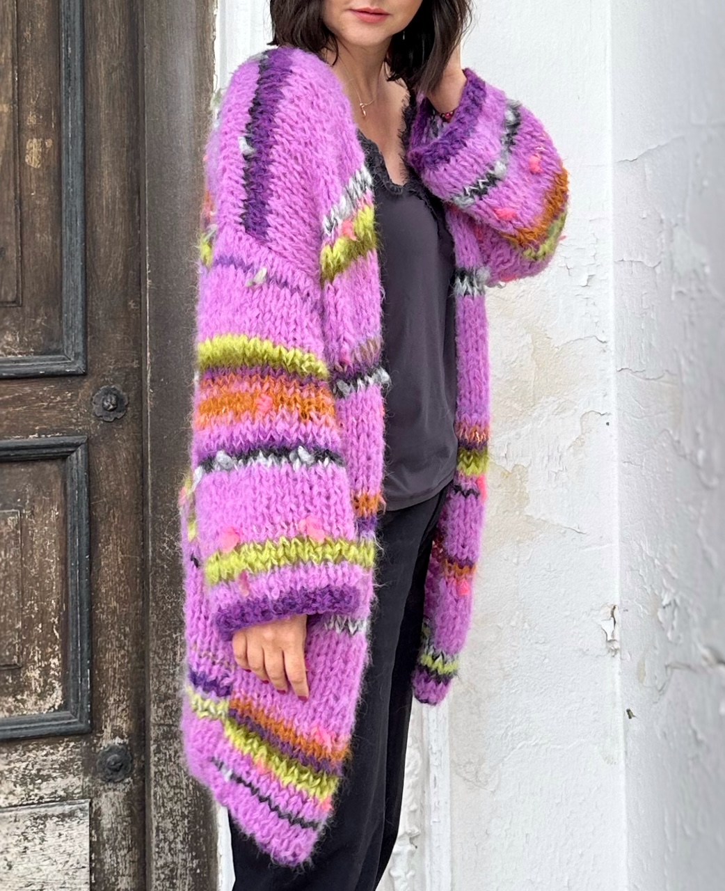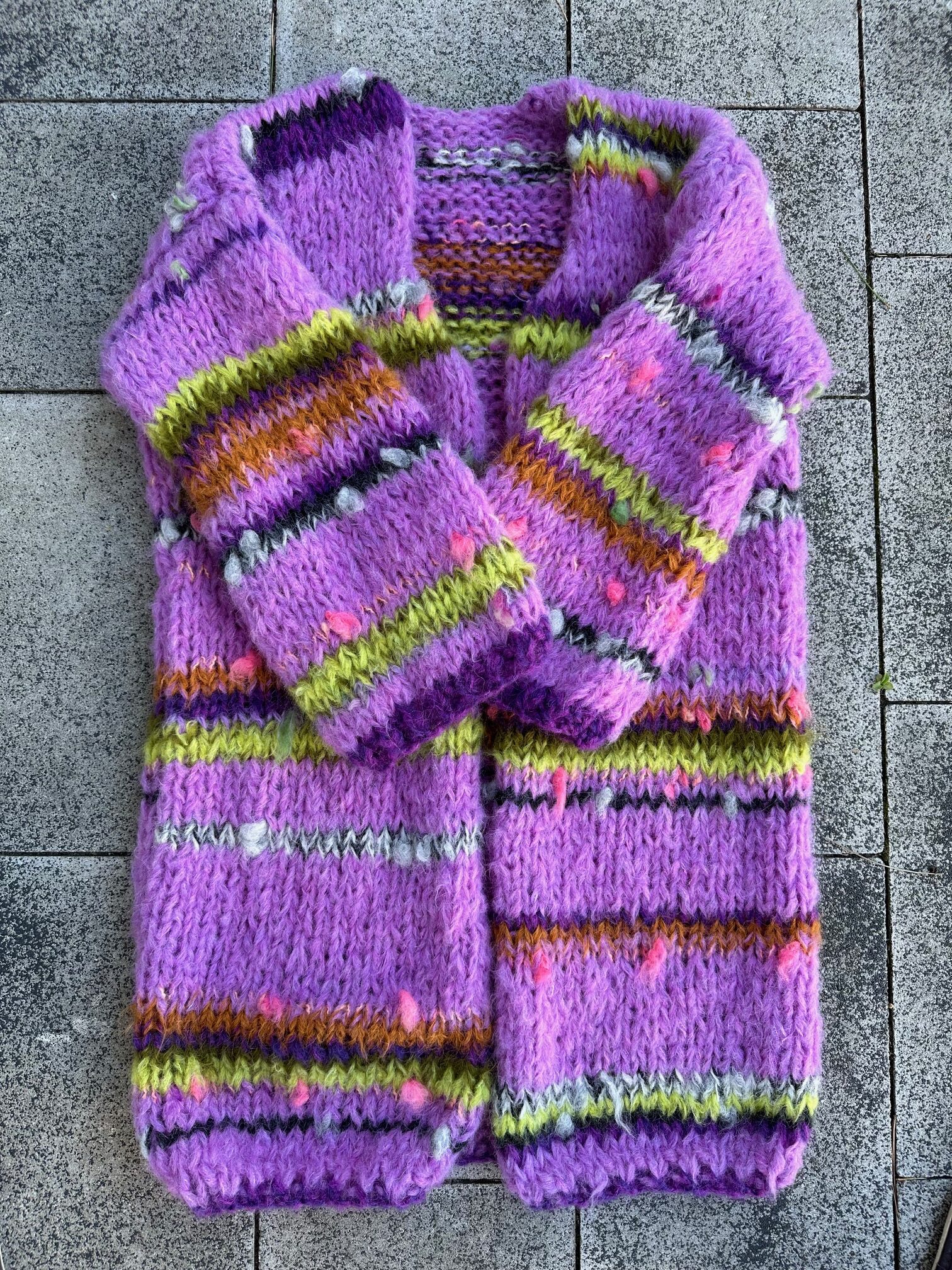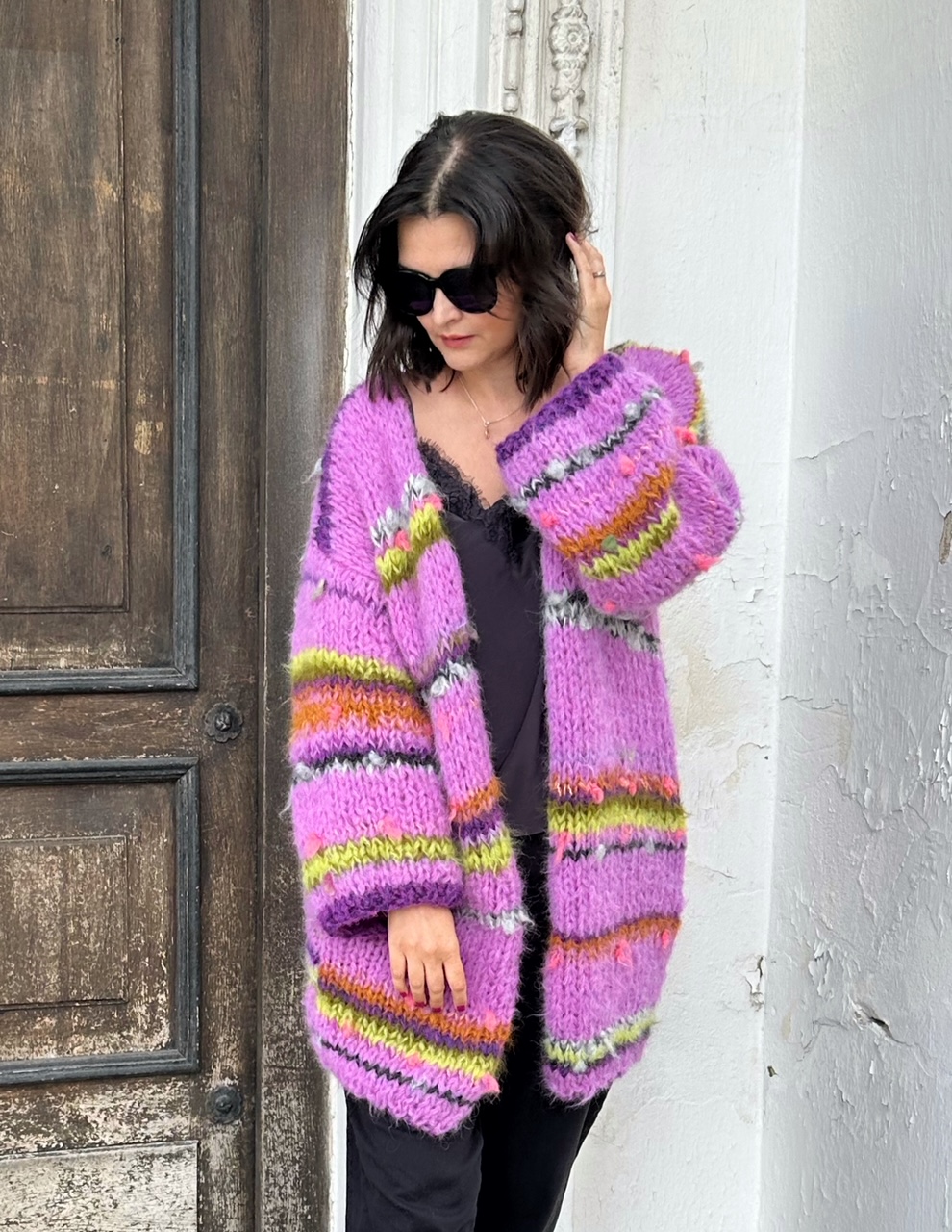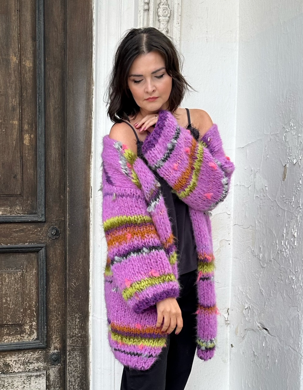Kardigan Sophia to ręcznie splatany na drutach z naturalnej przędzy najwyższej jakości , cudownie miękki, otulający, idealny na sezon jesienno zimowy, efektowny i niezwykle kolorowy . Idealny do jeansów, eleganckich spodni czy sukienek.